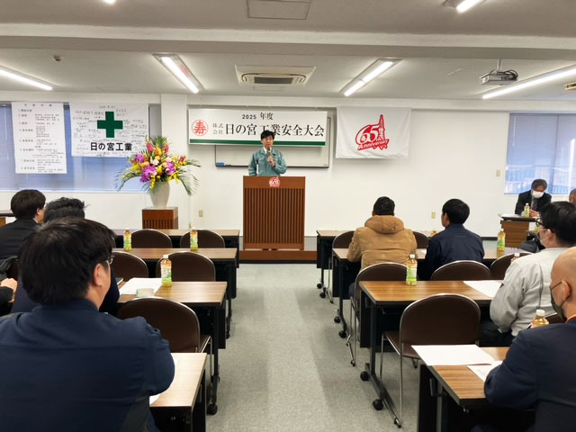 日の宮工業では、毎年12月に協力会社様や従業員を集めて安全大会を開催しています。